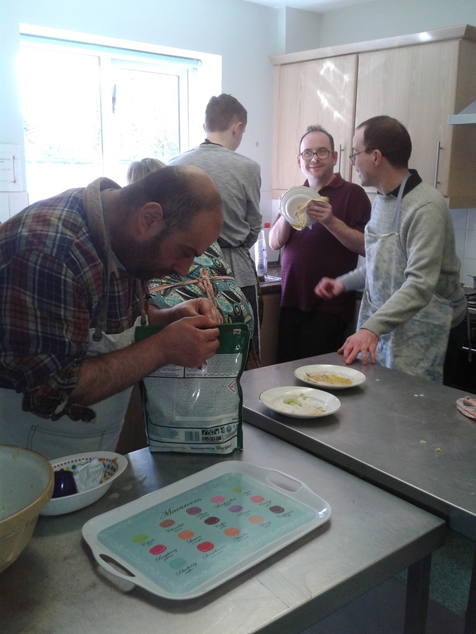 Each day lunches are prepared and cooked by participants working in the kitchen. We are required to ensure that all our food is of a certain standard and fulfills the regulated healthy eating plate on which has to contain the required measurement of meat, vegetables, carbohydrates and minerals. All our food is fresh and sourced from local shops. As a result of the recent scare regarding the illegal use of unidentified meat products we now use a local butcher where the meat is freshly prepared each day.